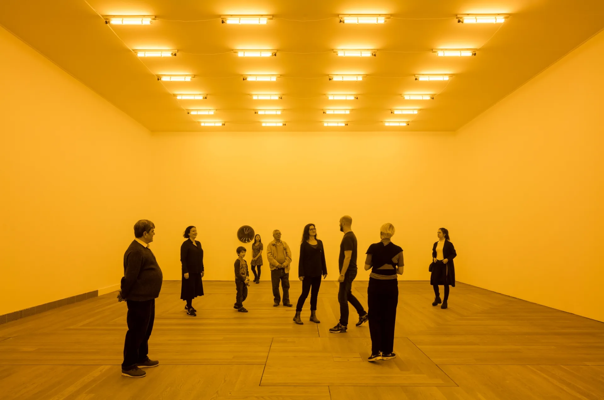• 埃利亞松(Ólafur Elíasson),《單色房間》(Room for One Colour),1997。低壓鈉燈。